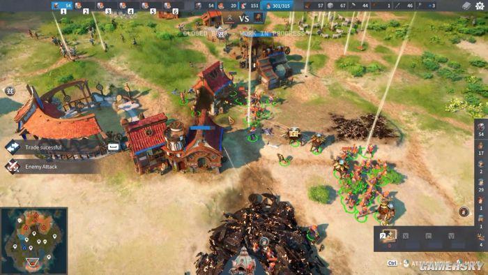 而且,一旦占据了煤铁资源,玩家就可以快速爆出大量的军队。而没有占据煤铁的玩家,只能通过缓慢而低效的贸易渠道来获得军需资源,需要很久才能造得出一两个兵。因此矿脉所属权的争夺,基本就决定了游戏的胜负。这加快了游戏的节奏,让玩家无法闷头种田,安心发展自己的城市。原本作为一大特色的工人系统,也因此无法再吸引玩家驻足观赏。