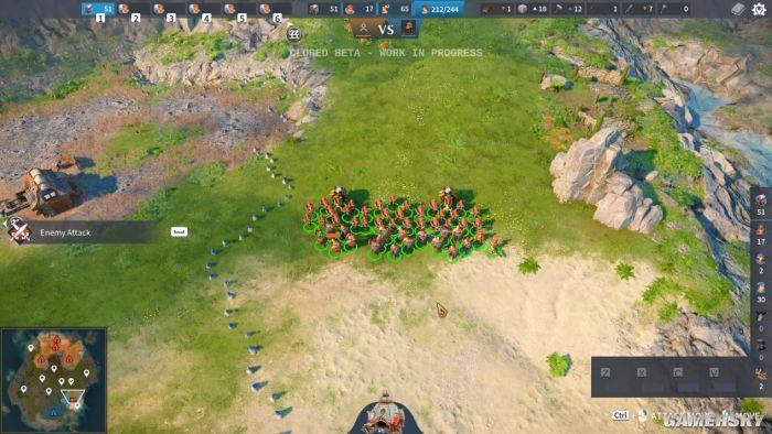 另外,游戏中目前并没有“英雄单位”的存在,缺少了通过以战养战,培养英雄或高级兵种的乐趣,让每次的交战变成了纯粹的经济互换。而由于双方的兵种差异不大,类型稀少,操作手感也十分笨重,最终胜负基本只取决于军队阵型与数量的多寡,因此玩家也很难有通过精细操作、兵种克制来以少胜多的乐趣。