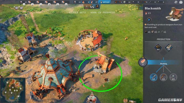 , s7 W9 I3 r- w/ j# d+ Q0 D目前测试版中的兵种并没有表现出太多的亮点。作为玩家主力的三种基础兵种,分别是擅长承伤的剑盾兵,高输出但血量少的大锤兵,以及能远程输出的弓箭手。在建造一些进阶建筑后,玩家还可以招募攻城特化的炼金术士、喷火牛与治疗特化的祭司,不过也就仅此而已,没有什么高科技含量的精英兵种。! Q. Y" Y; T) r