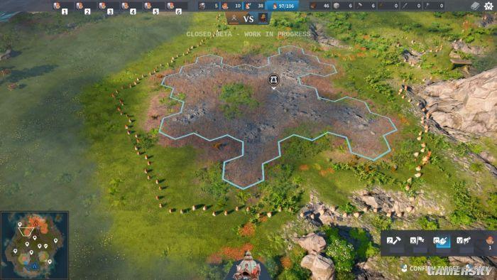 只有在规定的疆域内,玩家才可以建造设施,而疆域也同样需要通过专家来进行拓展。在使用命令派遣后,专家们就会将代表疆域范围的界碑石拔出来,逐渐一格格搬运到远处。