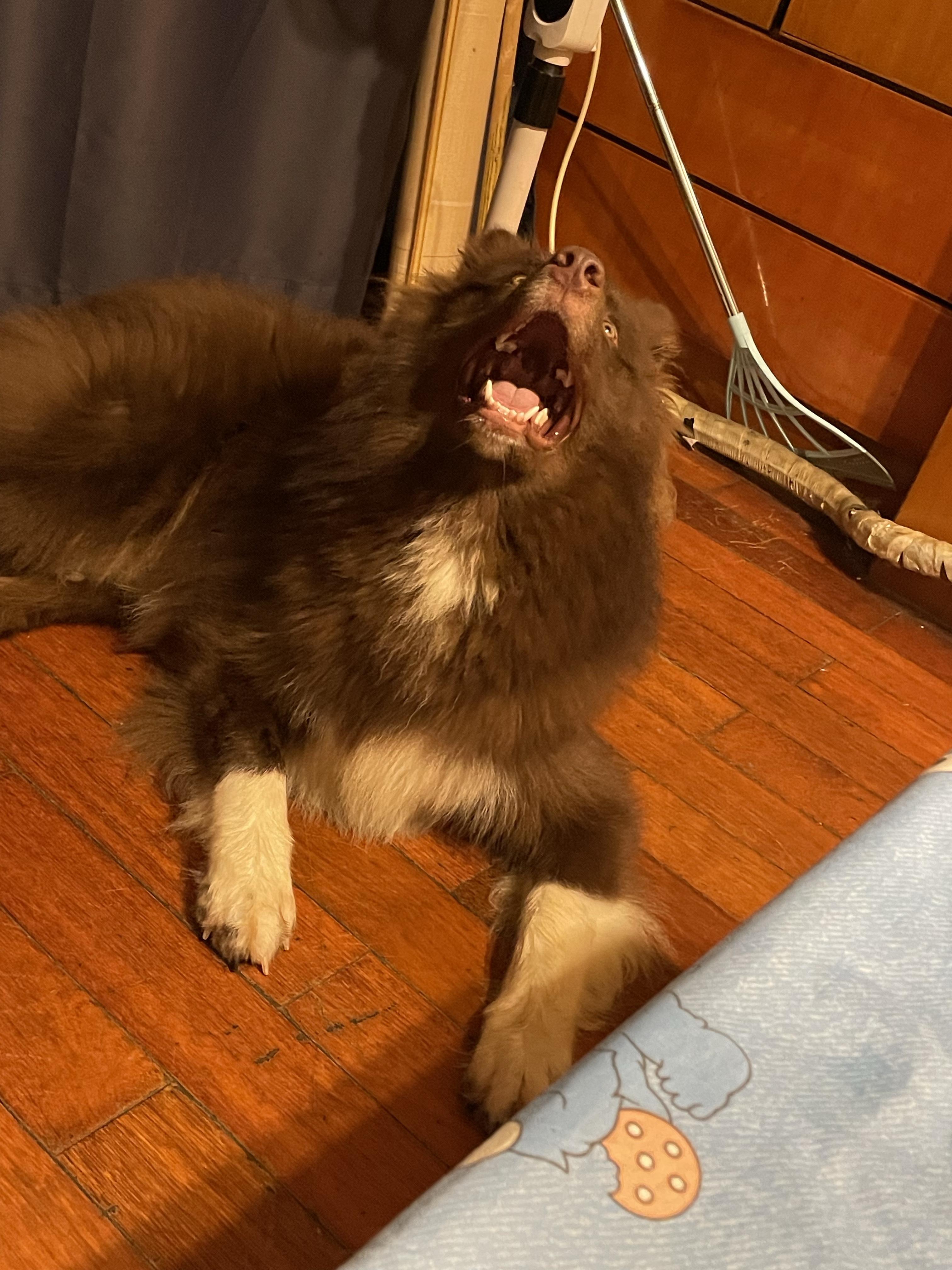 # J* U4 x# I6 b# x/ |' U6 W9 T还有,它爱在家里拿回来的陌生物品上做记号,打了很多次(很轻),终于有长进了。! w7 P/ M! c: ~1 G# f0 J3 y3 G0 V