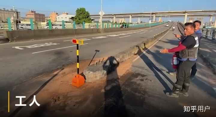 先看看(已经被清理干净的)事故现场,很明显那里有个水泥墩,高度目测约20cm,被事故车撞断的交通牌立柱就是安装在水泥墩上的,底部的螺栓图上还能看见,水泥墩头部也有稍微受损。
