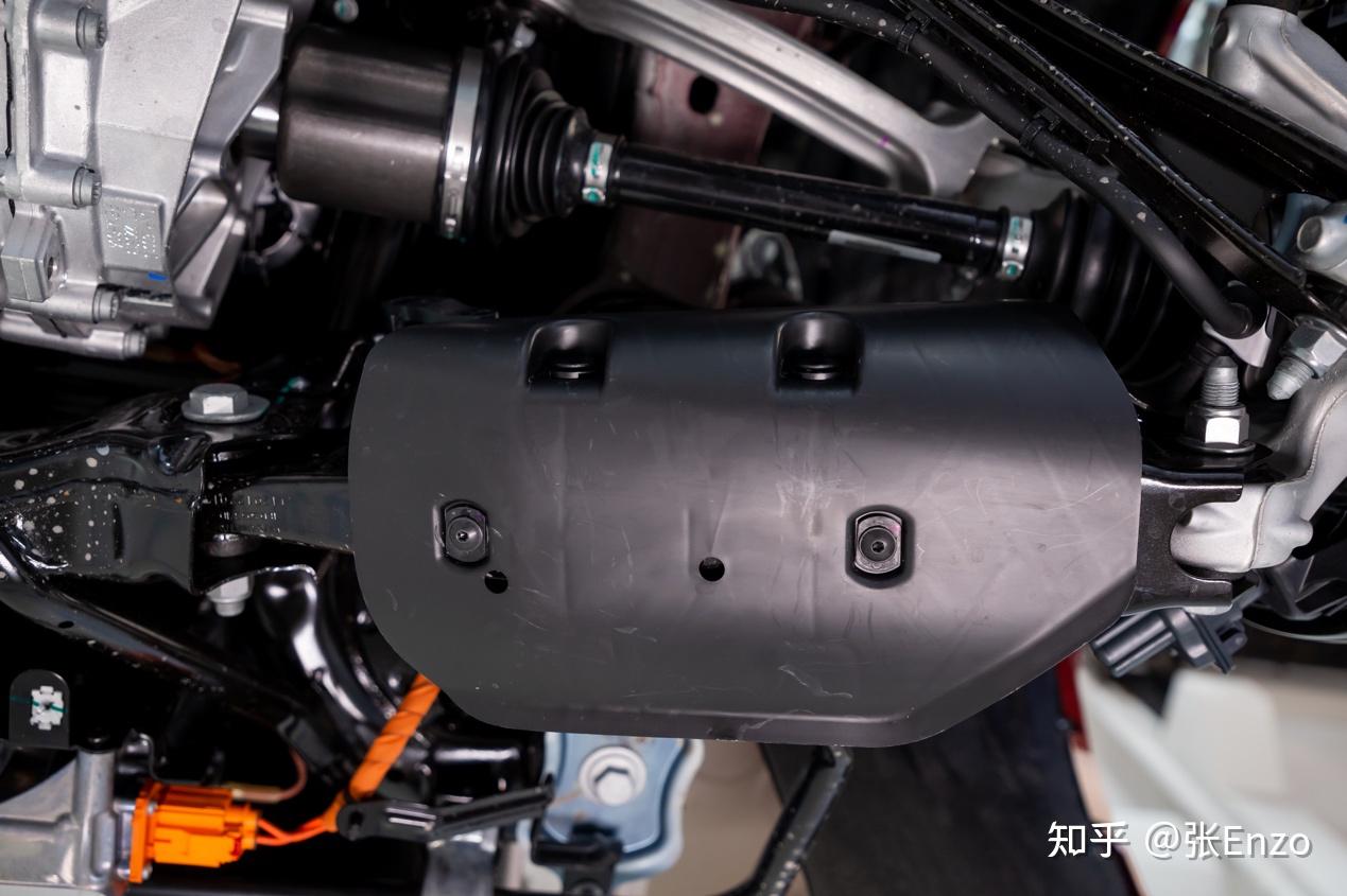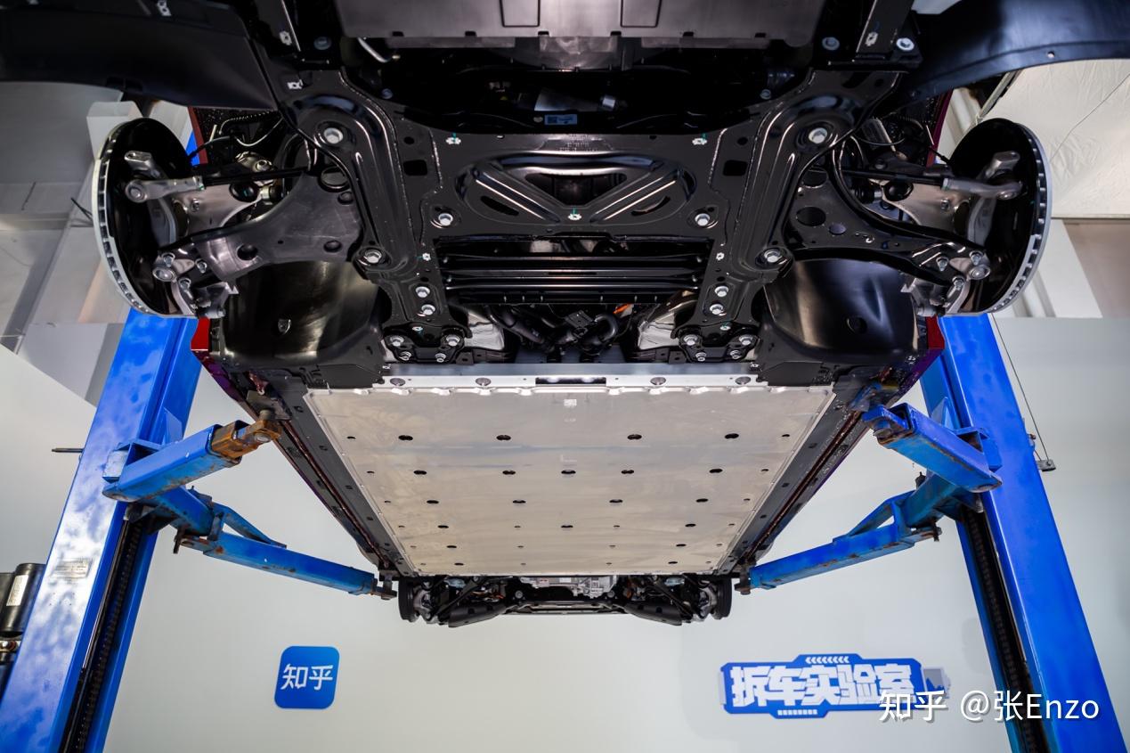 ) r n" t2 q+ I2 ?降低空气阻力除了车身要尽可能平滑之外,底盘是我们常常忽略的影响空气阻力的因素之一,抬高车身后,可以看到前后悬架的下面各有两个盖板,这个设计增加了底盘的平整度,官方称这四个盖板总共可以增加4公里的续航。