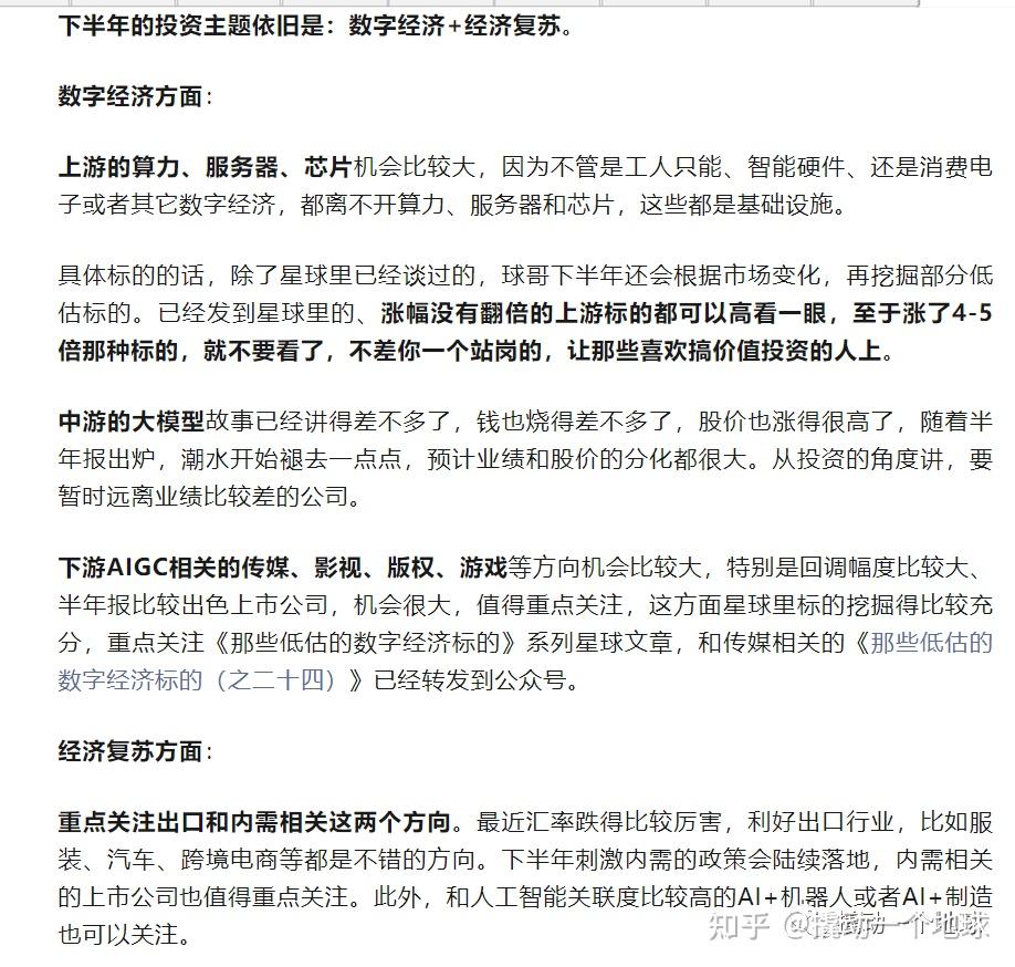 从投资角度讲,股市也稳了,球哥在文章《2023下半年投资方向》中谈过下半年的投资方向,现在,继续维持原来的判断。