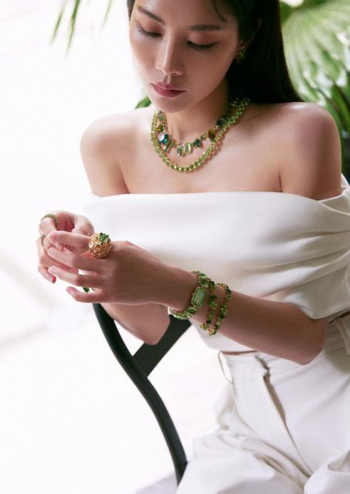 比如施华洛世奇的Gema项链,就好似让人置身于森林之中,让森系女孩难以抗拒。这款项链采用了采用了大量切工和色彩各异的施华洛世奇元素排列组合而成,整体设计看似简单,却细节满满,饱和度各异的波西米亚风绿色施华洛世奇元素相互映衬,呈现出一种和谐的自然美感。且因为切割面诸多,在光线的照耀下,还会发散出淡淡绿光,让人倍感神秘。