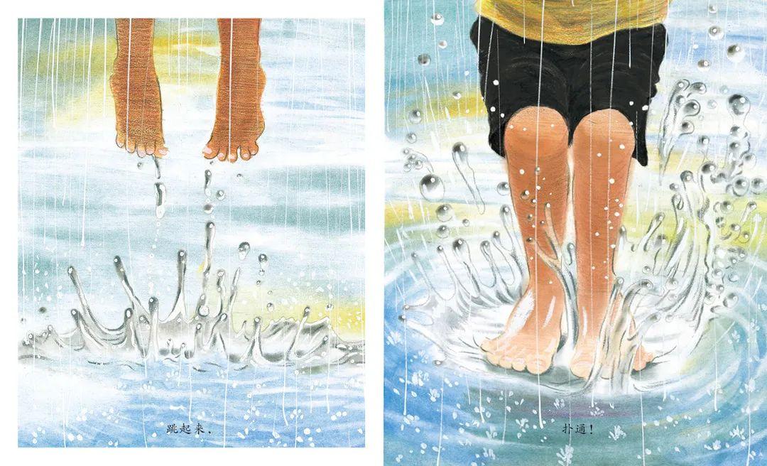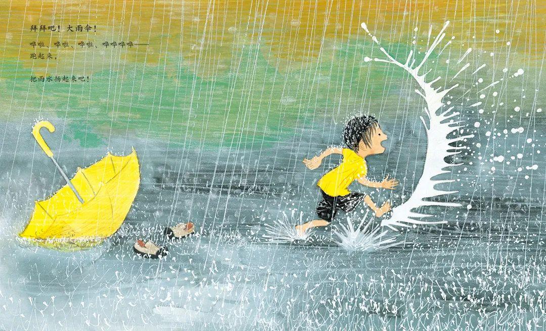 内容非常简单,夏天里,一个小男孩遇到一个下雨天。