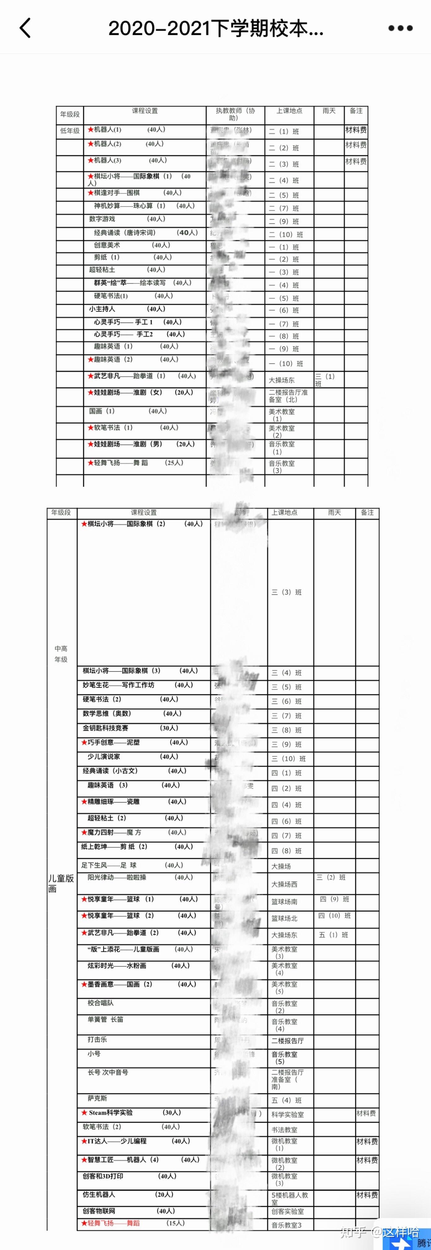 * I# ^; |* P) y! [' i1 T6 M略跑个题,我娃学校也有校本课程,内容也很丰富了。大部分不收费,收费的也是基本材料费。有些是本校老师带的。有些就是请校外小有名气的培训机构或者专业人士带的课配一个本校老师。