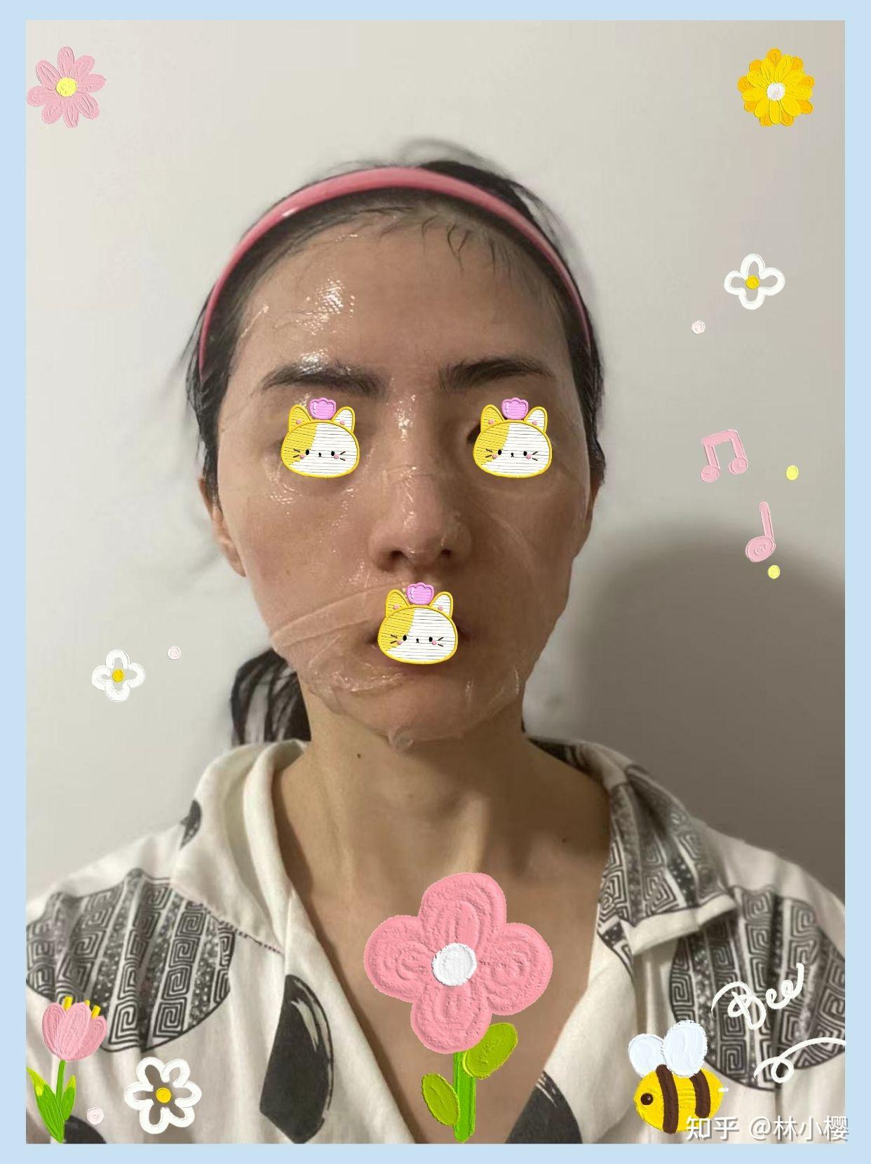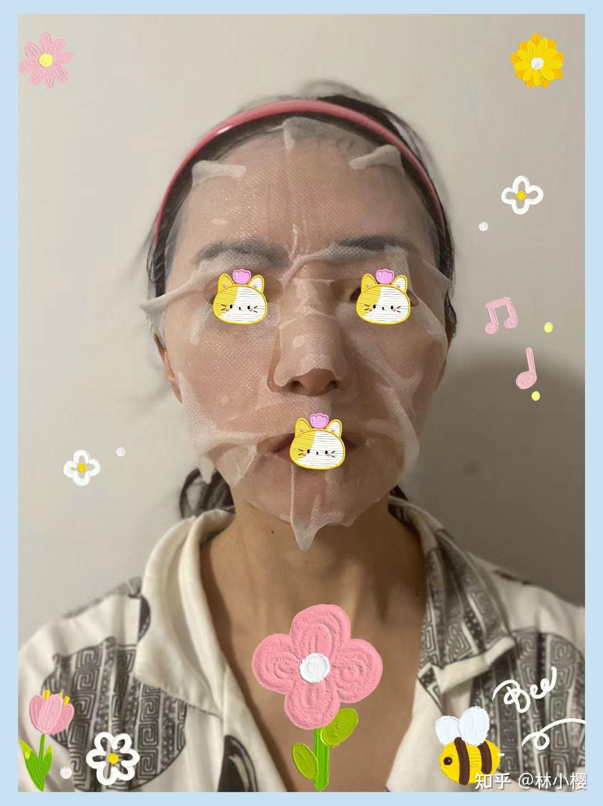 想要服帖肯定是要把固定的网布拿掉,就变成我下面这样,不知道大家从图片能不能看得出来,水晶丝面膜布一直往下滑,我的脸好像挂不住它,毕竟有个重力作用,你这么光滑的水晶丝,我的脸真的挂不住啊啊啊啊8 S8 Q* t9 w$ I3 i3 s# D6 Y6 w- W4 o& Z! J