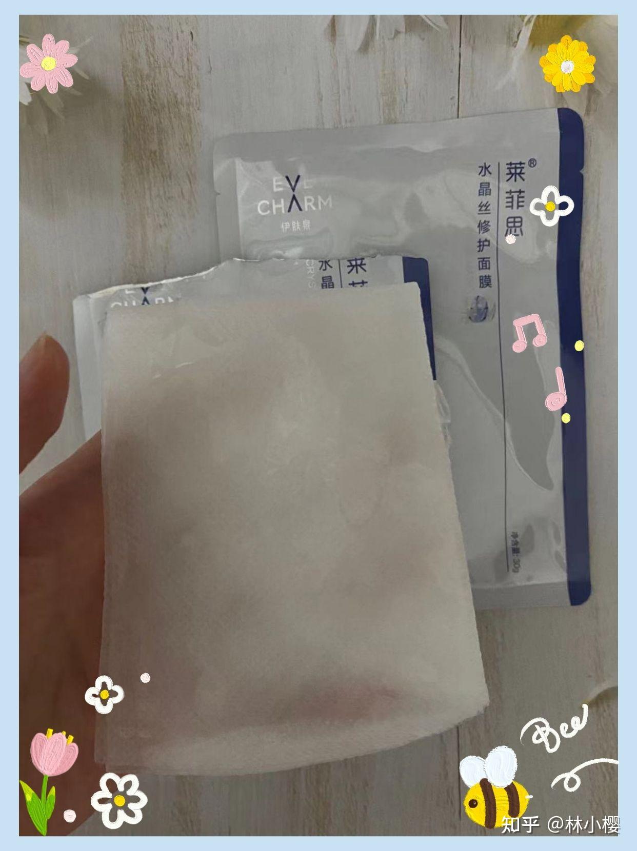 $ }# [- U6 j, o莱菲思 水晶丝修护面膜,也是伊肤泉出品的,有1说1,舒缓修护的效果不如同品牌的【伊肤泉莱菲思舒缓修护保湿面膜】,如果你是皮肤容易发红的敏感肌,我肯定是推荐你选【伊肤泉莱菲思舒缓修护保湿面膜】,如果你不是敏感肌,想要试试水晶丝面膜,那是可以的,只不过试用体验可能不是非常好,水晶丝是真的水晶丝,我贴完面膜,手上可以捏一团下图这个样子