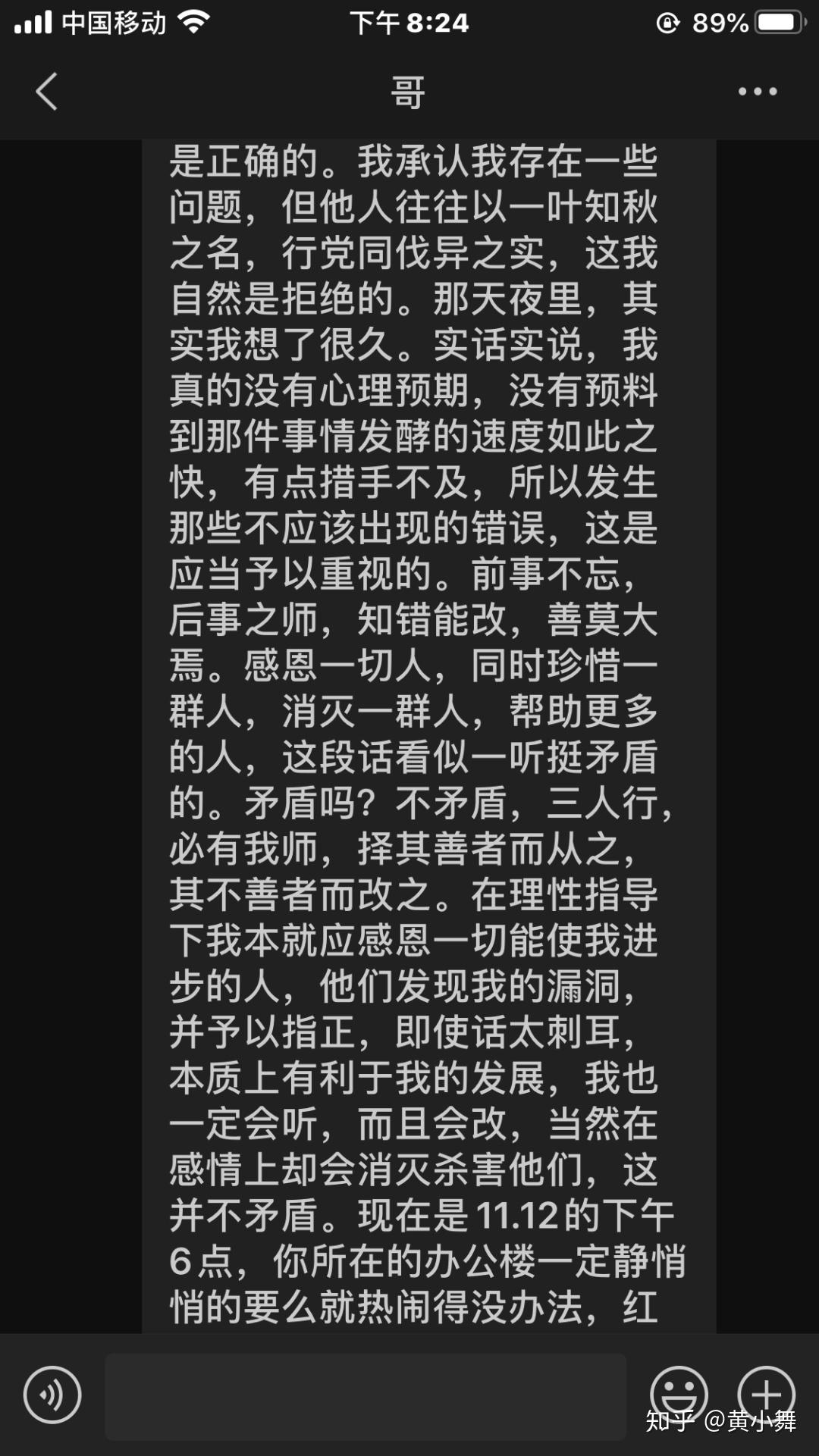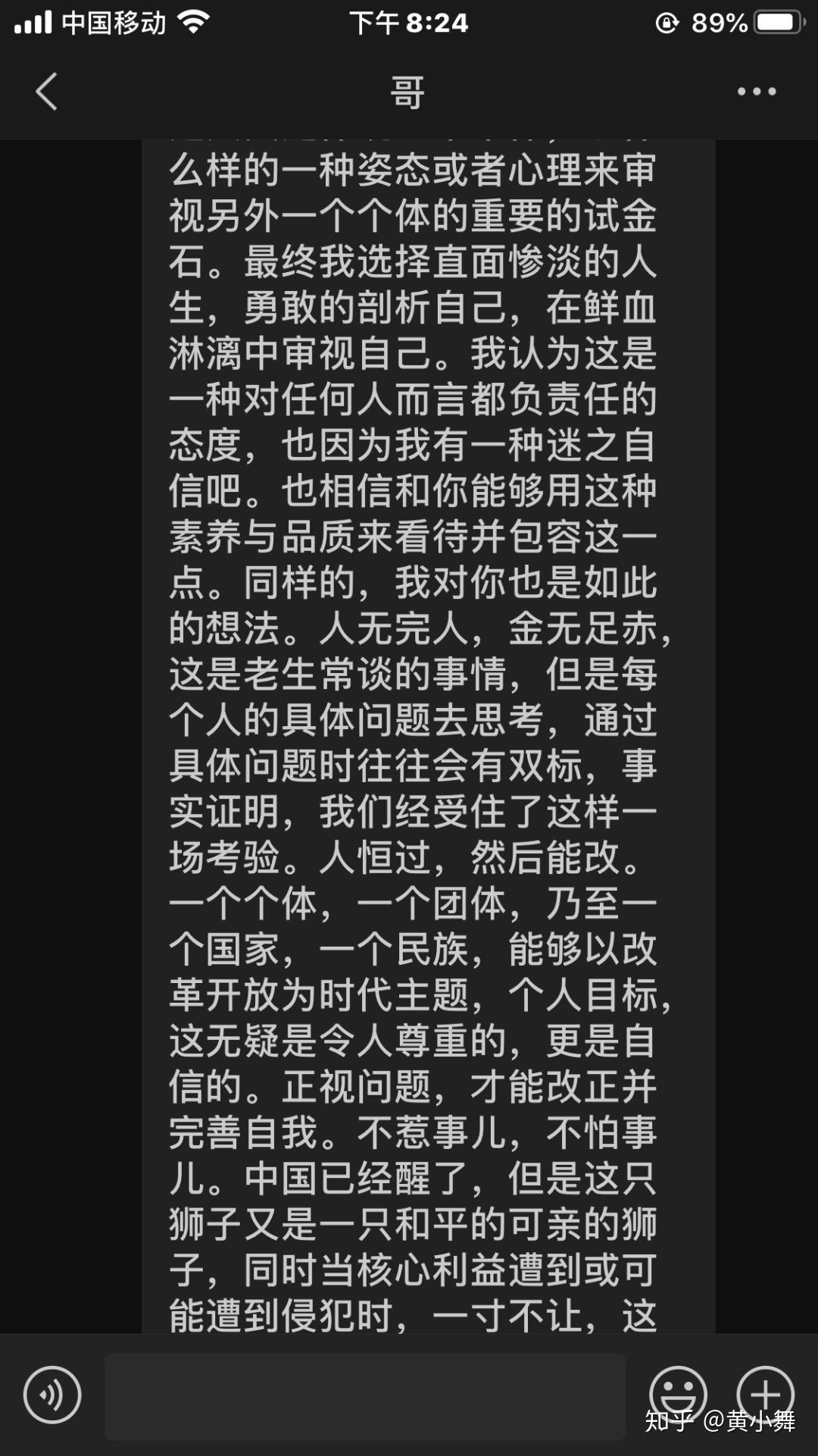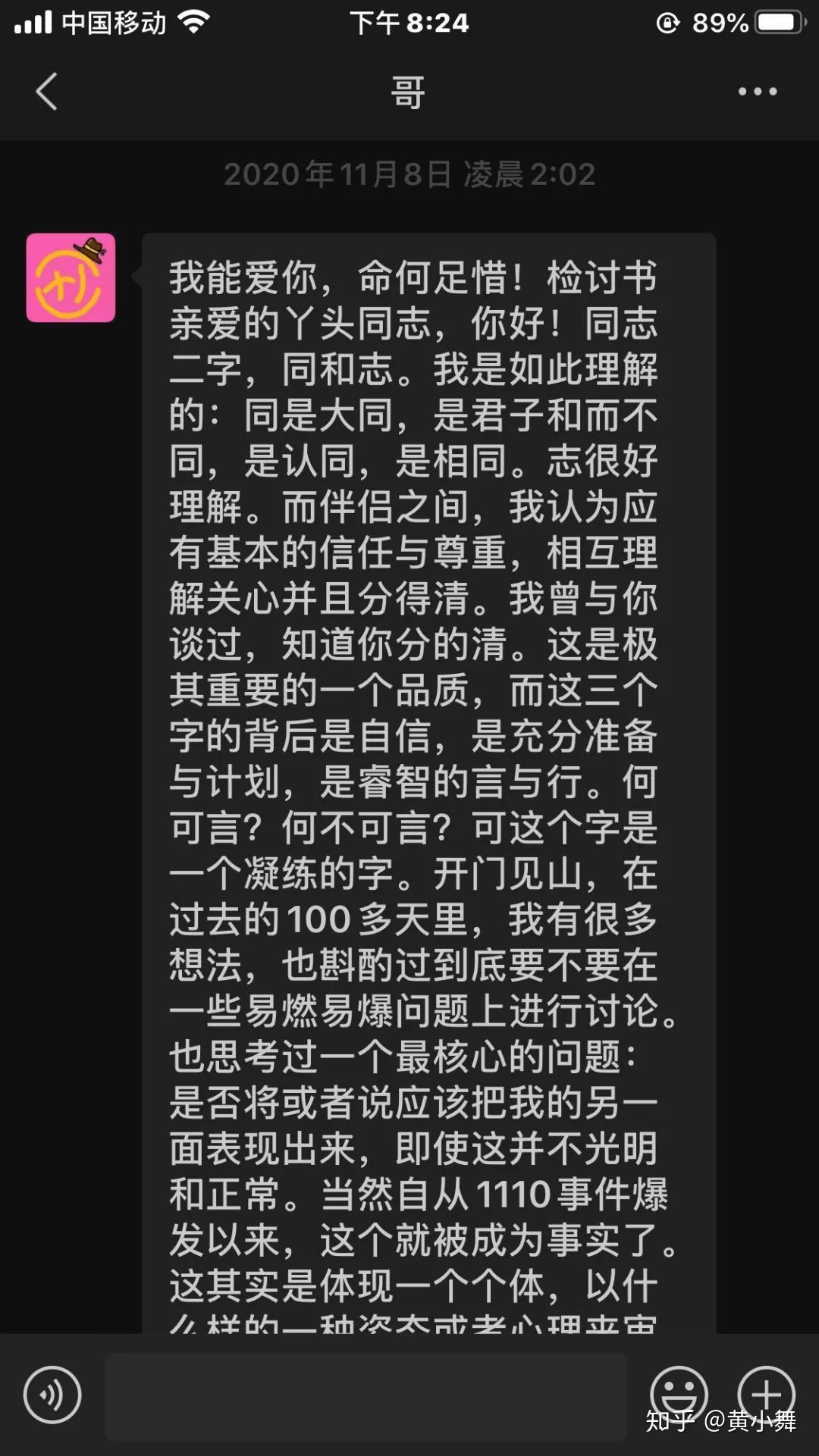 ( ?) _% C2 S: f$ ]5 E& ]那天晚上,大概是2020年第一次通宵,彻底地失眠。聊了三个小时之后彻底失眠。起来写下了一百条关于他的话。尤其是他写了那封信给我之后,那种内心底的触动是波澜壮阔的。" A0 C: P- l4 z% m- \+ T/ H