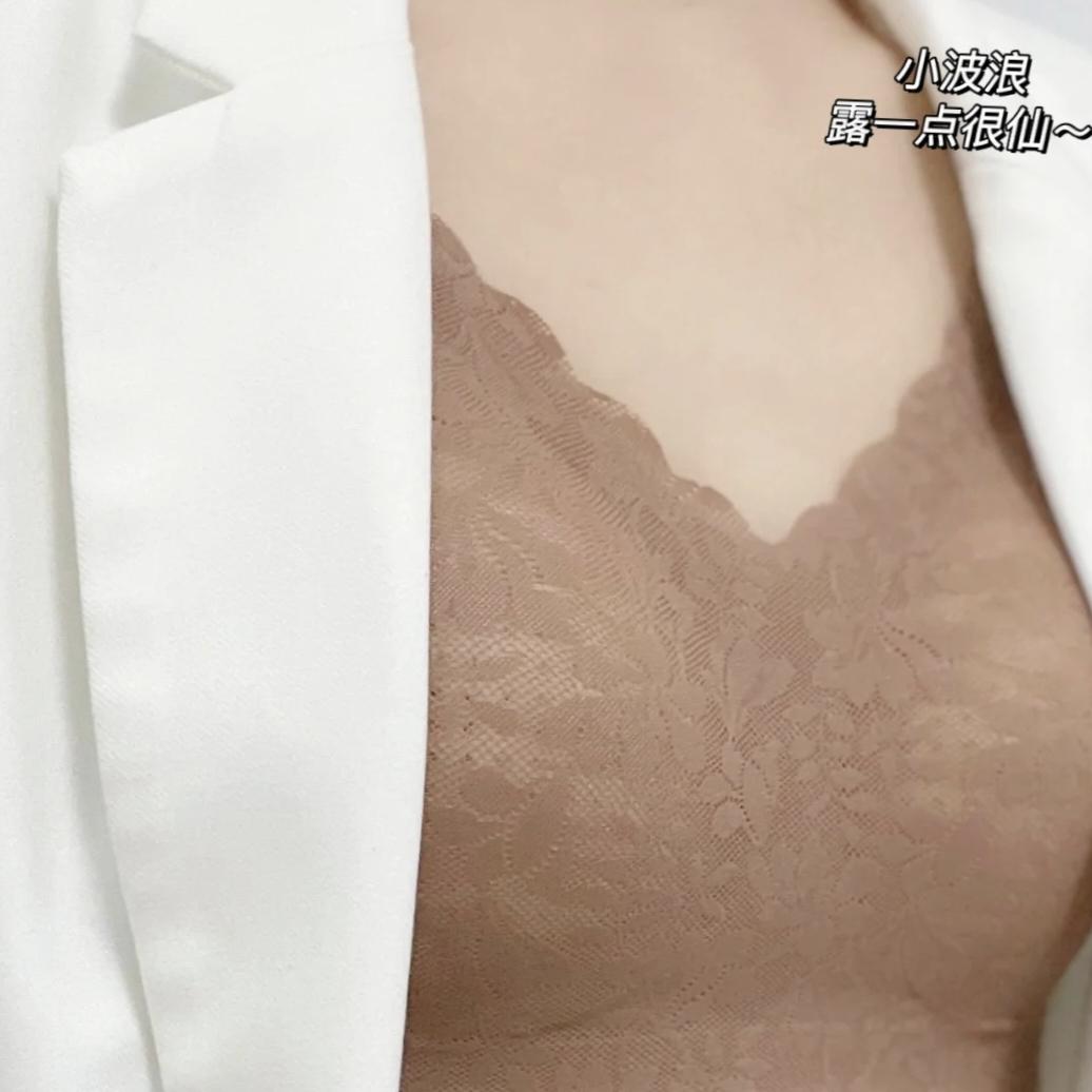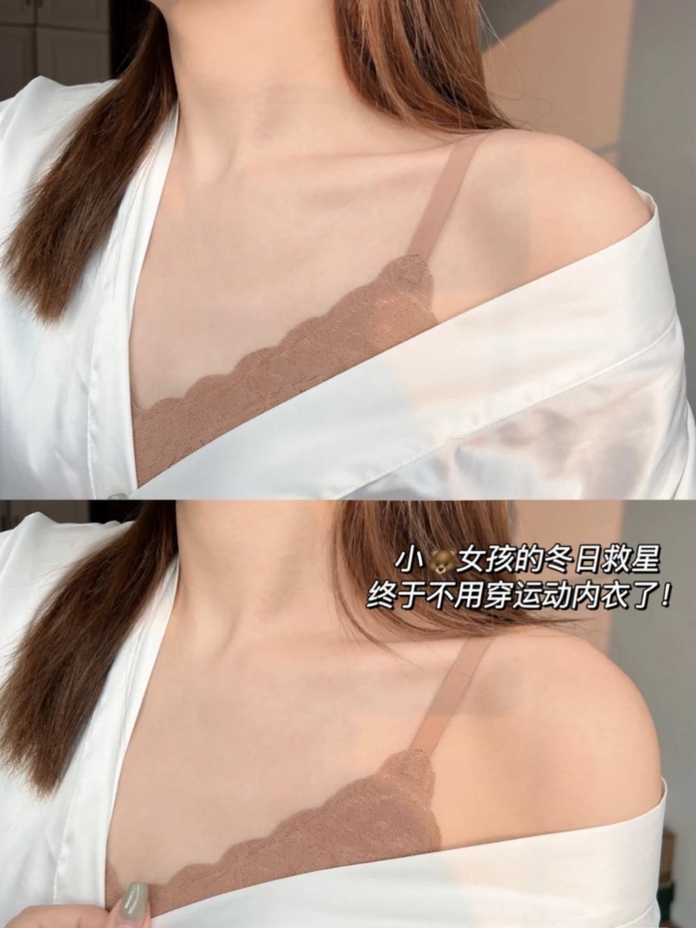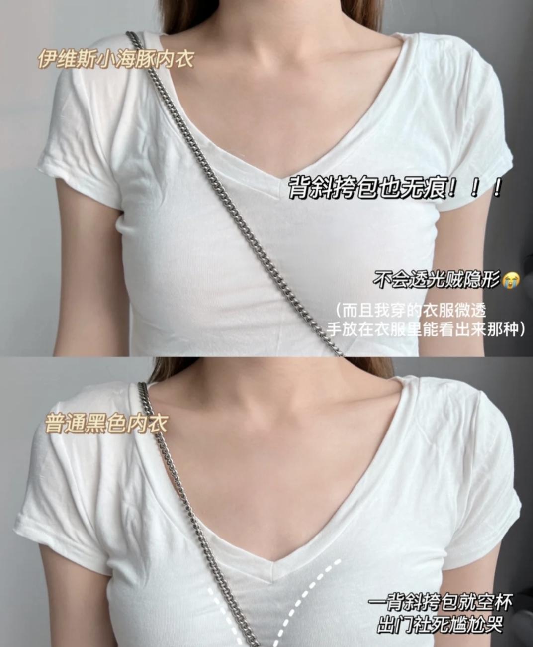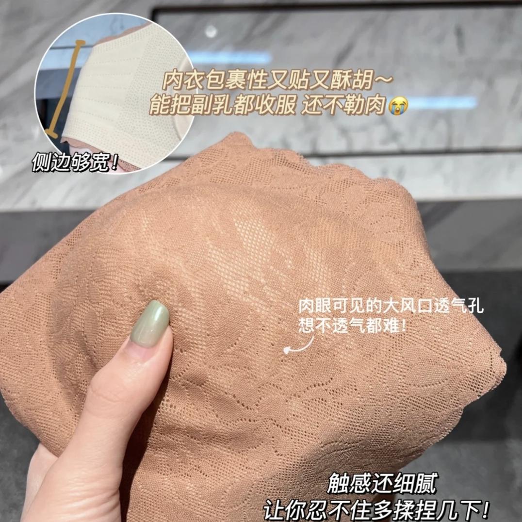“没有钢圈,有聚拢还裹胸,糯糯的贴合胸部。”& U3 L- y f" n- B