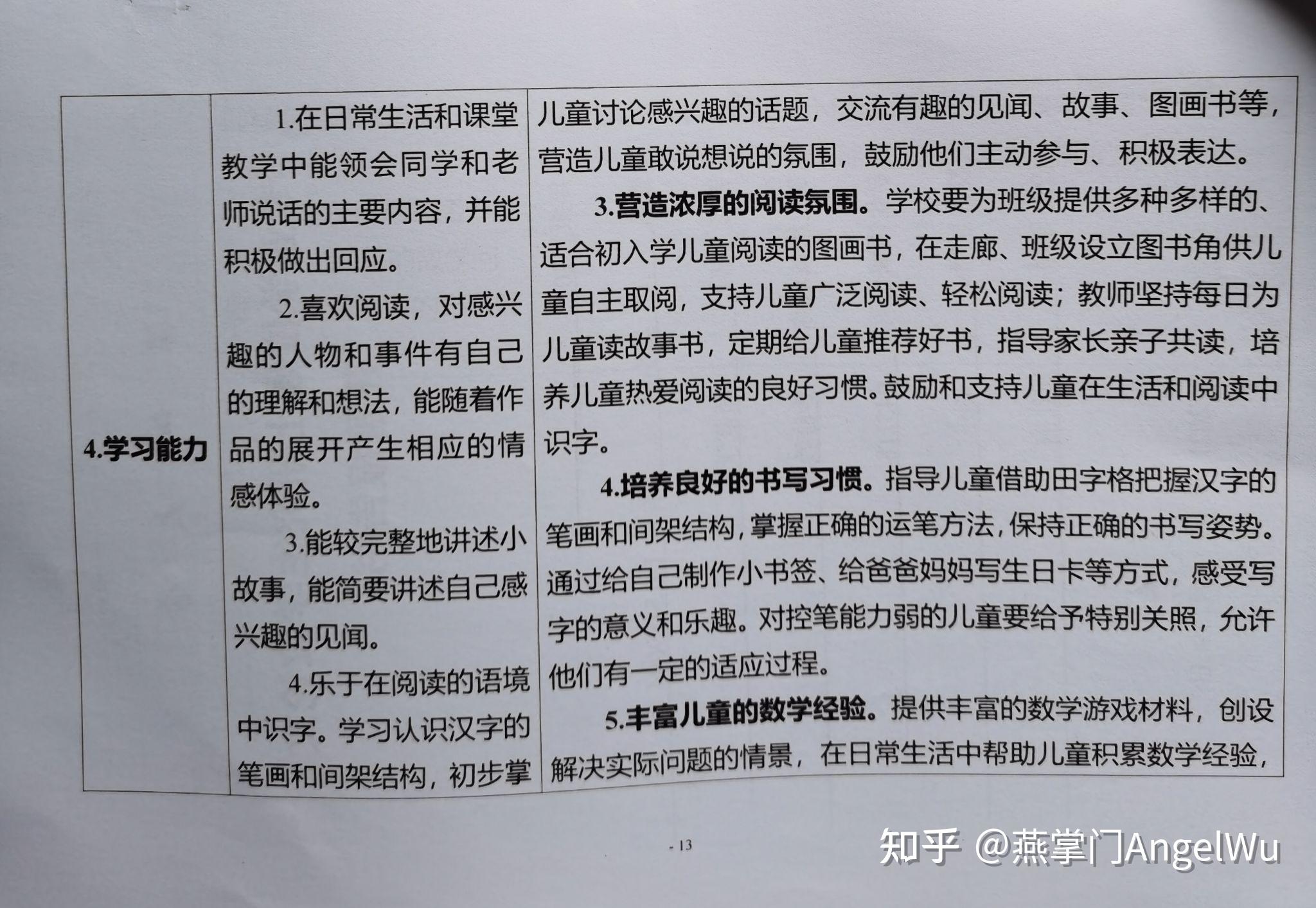 见下图,来自我对《指导意见》中入学适应之学习适应部分的实拍,包括学习目标、教育建议。7 L8 C: F1 n. i! J( H% l5 {