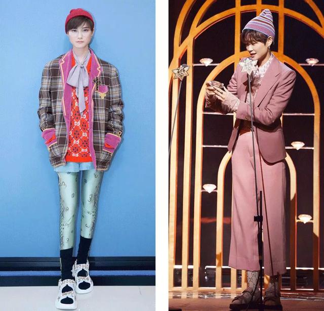 ) m0 S/ Z/ B h3 Z+ @* j) q% u0 P( z她参加活动还穿过好几身复古飒爽的西装。反正穿什么都飒。
