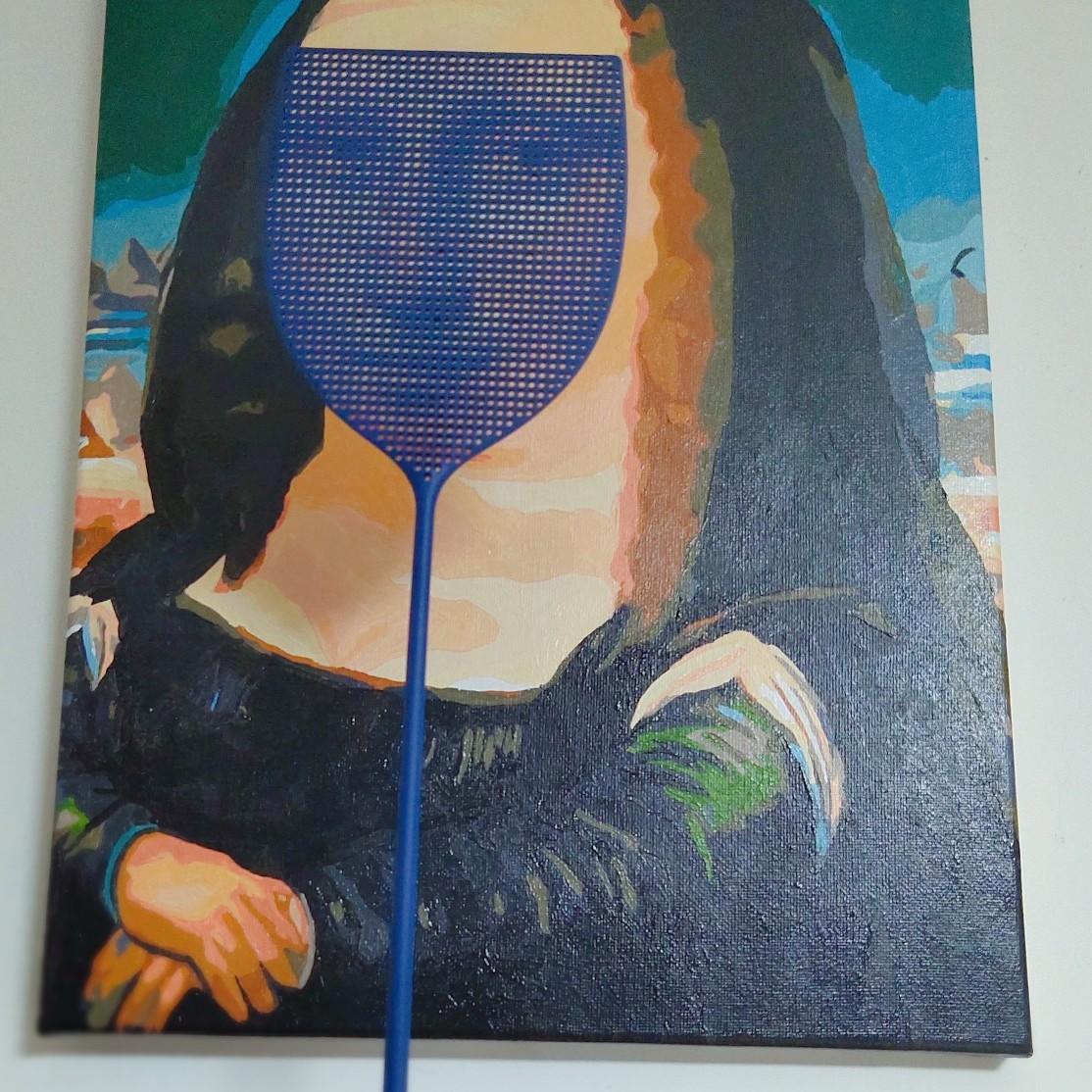 没看错,苍蝇拍上有张蒙娜丽莎的脸* M6 c' o1 l: P$ l, b P$ q