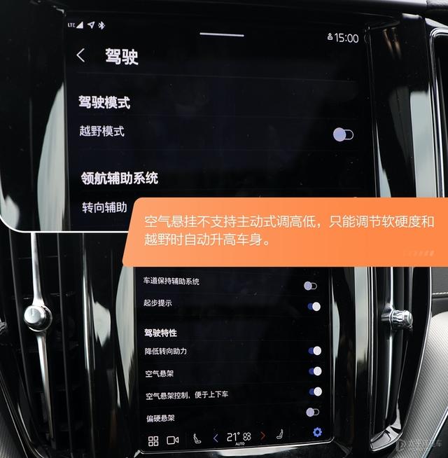 沃尔沃XC60的底盘配置没有变化,但是今天这台试驾车拥有空气悬挂。只不过这个空气悬挂不能直接调整高低,只能在驾驶模式中调到越野悬挂才会自动往上升。另外2022款沃尔沃XC60配备第六代博格华纳四驱系统,相比第五代版本不仅重量减轻,而且还提升了算法的能力,最重要的是为后轴调用100%动力的硬件能力,虽然买这车都不会拿去越野,但是脱困能力是比旧款车型要好不少。8 s, Z% g8 x! D% W* | T