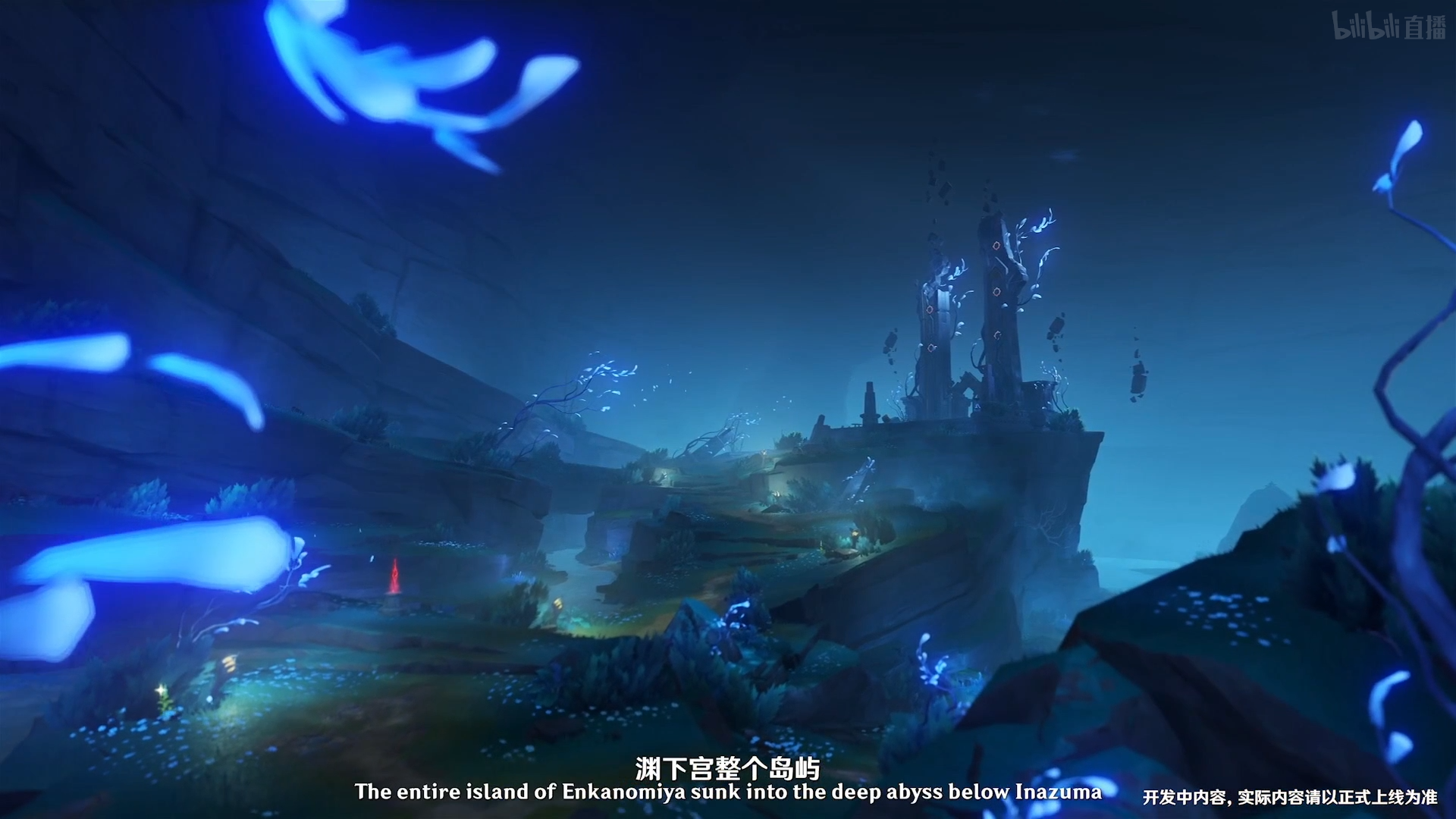 根据直播中提供的信息我们可以直到:远古时期(猜测应该比雷神巴尔姐妹开始统治稻妻的时间点还要早得多),渊下宫原本也是位于海面之上的正常岛屿。然而因为一次原因不明的大灾变,导致整个渊下宫沉入稻妻之下的虚无海渊中。
