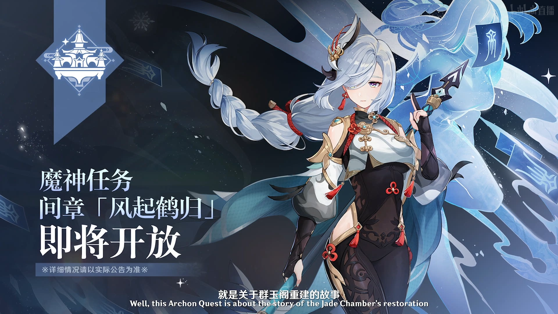 - T% `- ~/ b! S! M 璃月保卫战中为封印复苏的漩涡魔神奥赛尔被毁的群玉阁在时隔一年后终于要筹备重建了,本应是一件可喜可贺之事,然而来自大海深处的威胁再度死灰复燃(PV 中表现为一个海龙头,应该是早前未完全封印或成功突破封印的奥赛尔的一部分),面对阴霾天空下气势汹汹即将席卷璃月港的滔天巨浪,北斗舰队无力回天,作为群玉阁的主人凝光平静地表示,虽然群玉阁失而复得来之不易,但如果是为了保卫璃月,自己可以毫不犹豫再砸一个群玉阁。