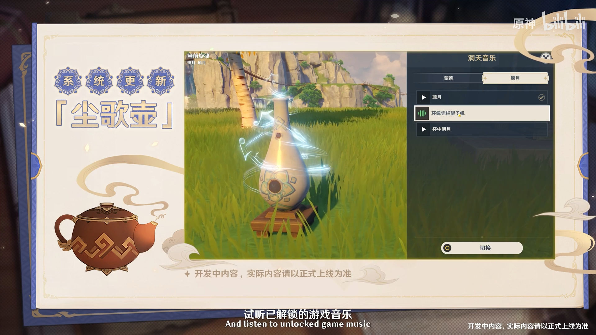 # k- X" I, c9 T! t9 w% M尘歌壶除了更新了一个可将单件摆设组合、整体进行收纳和移动的方便功能外,还新增了一台能够试听游戏乐曲并改变壶内背景音乐的摆设「千籁至音」。新机关组合「疾行节奏」也将加入洞天百宝中,由「计分灯架」和「闪烁踏板」组成,大抵是一个可自行修改的考验反应速度的小游戏。) O- N5 f, x5 J6 U