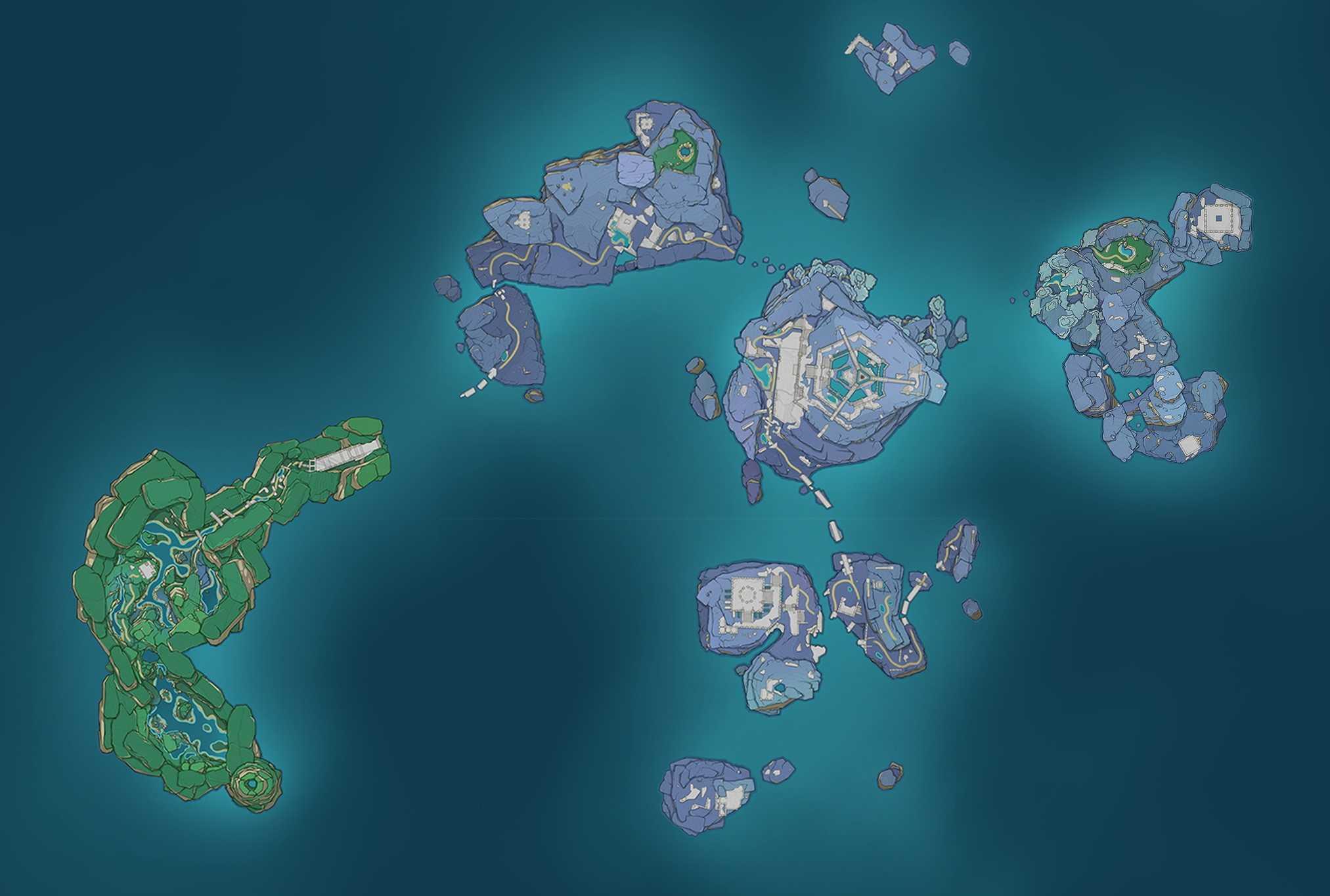 渊下宫大地图。和金苹果群岛类似是一片脱离提瓦特的独立区域,预计规模只会比龙脊雪山更大