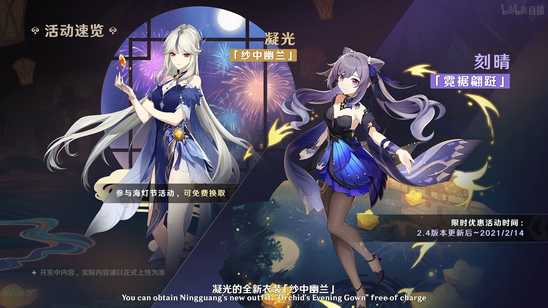 , w' s7 G8 W; i$ G: c2 _ 大家注意凝光的服装「纱中幽兰」只有在海灯节活动期间才可以免费兑换获得,活动过后将会收费,因此请抓住机会。刻晴的新装「霓裾翩跹」则必需使用创世结晶氪金购买。说起来,记得之前还有人批评过琴的泳装皮肤设计简单定价太高,这次面对刻晴老婆的华丽新衣,应该没人还能这么说了吧。6 D2 t7 w/ Y) J7 r
