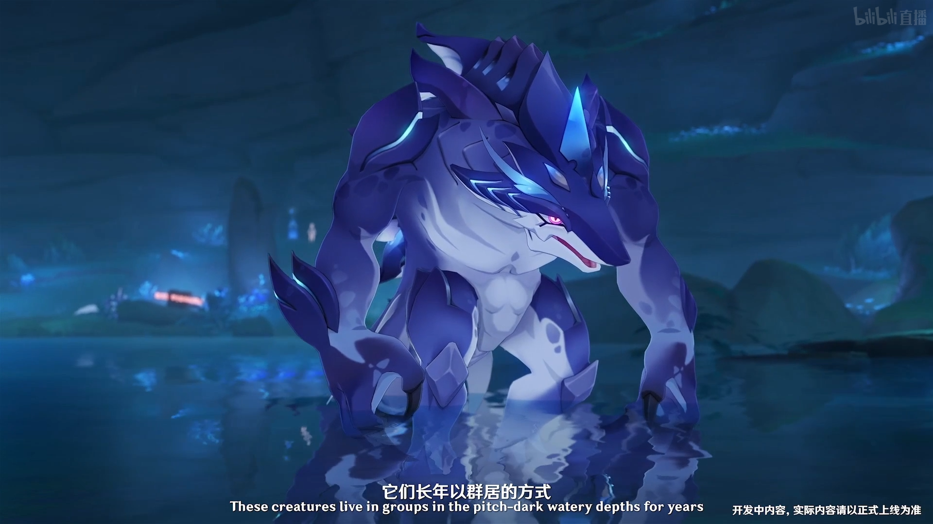 威胁着渊下宫人民的怪物「深海龙蜥」。这些喜好黑暗的掠食者通常群居,极度危险,龙蜥种族中某些特殊个体还会进化成更加凶险狡诈的形态1 q9 P6 g4 O6 J