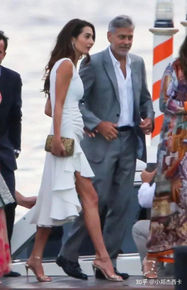 外出吃饭时,大律师换上一万元左右的Emilio Pucci 连衣裙,搭配 Jimmy Choo坡跟鞋和 Max Mara 墨镜。* p4 x1 ^3 t: i& i( x# u. r1 N5 f