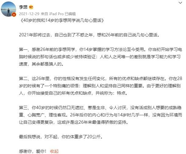 聊完这次小米自动驾驶,我想起理想汽车 CEO 李想 40 岁生日时候,在微博说的一句话「人与人之间唯一的差别就是学习能力和学习速度,其余都是骗人的」。