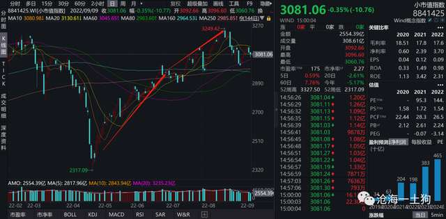 8月23日以来,沪深两市成交量的五日均值稳步下滑,目前,已经下滑至8100亿的水准,然而,这个值在6月30日的巅峰水平,大概有1.2万亿。