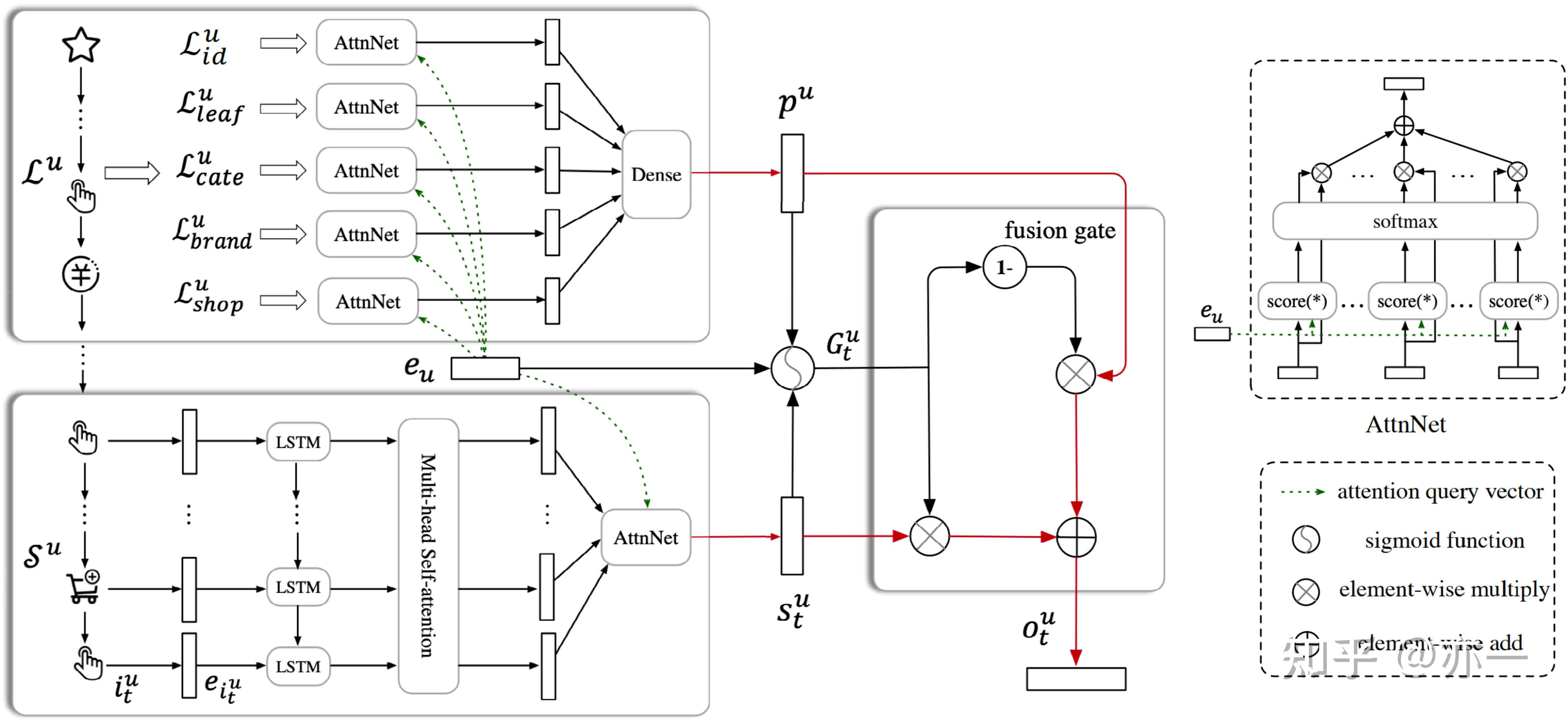 基于用户短期兴趣容易变化而长期兴趣基本稳定的特点,SDM提出将用户行为划分为短期行为和长期行为,采用不同的方式分别对两种行为建模,再通过门控的方式将两种建模结果进行融合,得到用户的综合兴趣。# m- }- f: ]9 F$ Z! K7 K