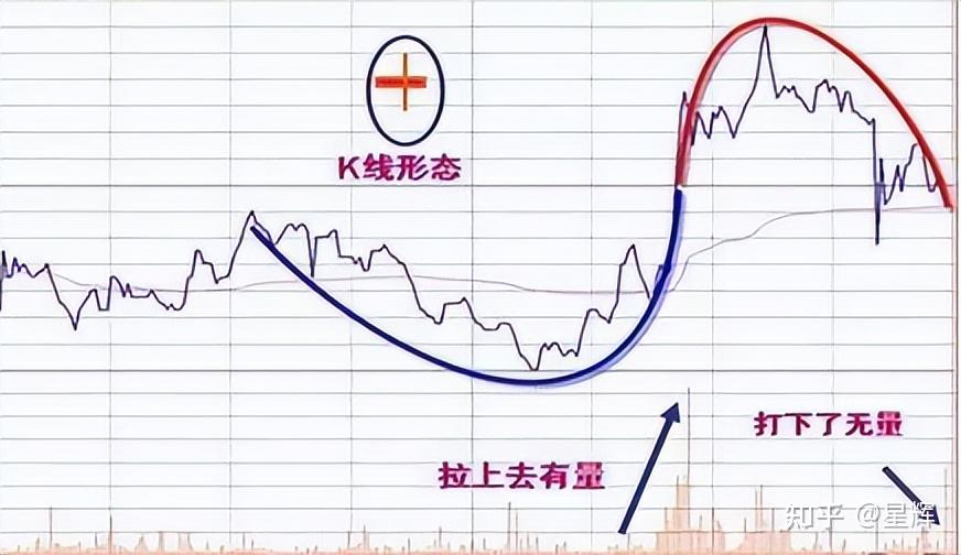 (6)、由于主力想吸引卖盘,于是对倒放量,并且收出很多“恐怖”的k线,例如十字星、倒T字,乌云线等,但是由于并非真正出货,因此重心不明显下跌。