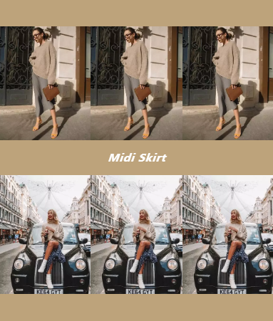 What’s midi skirt?3 ]+ B& G! G. k! m) G% v/ E