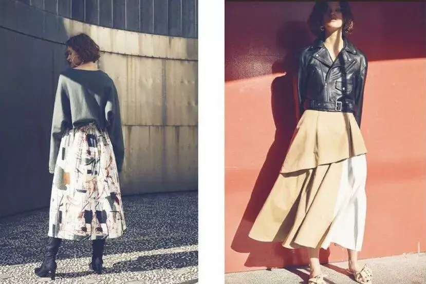鱼尾裙也属这个范畴,这种裙裙本身就很女性化,按照我们喜欢的调性,尝试搭配简约、甚至有点中性的单品,会更有碰撞感。