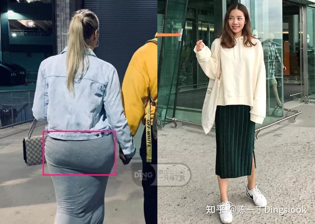 ' Y9 \+ c/ b! o这类裙子的问题,主要就是面料太柔软有弹性,包裹性太强,会把臀-胯-腿的线条勾勒得一览无余。