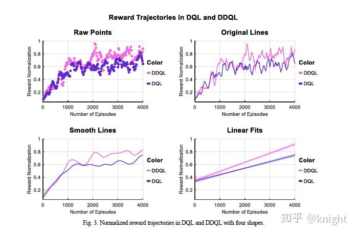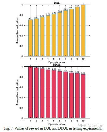 5 e- ?, [' B5 d0 f4 Q 这部分就是结果展示,作者主要分了两块来讲,第一块是对DQL和DDQL两种算法得到的结果进行了对比,第二块整体来看所得模型的鲁棒性和泛用性。