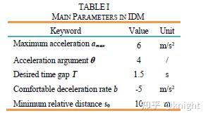 其中 表示最大加速度, 和 表示期望的距离和速度, 表示与前面的车的距离, 是系数,这个式子可以看出v和 与加速度的关系,一个负相关,一个正相关,符合我们日常理解,同时在任意一个满足条件时汽车就开始减速。同时 可以被更近一步表示为: